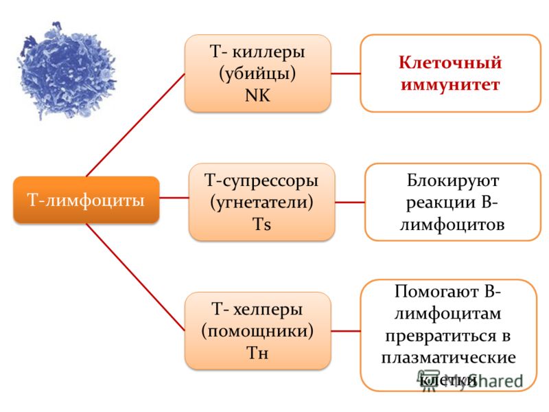 Добре. Так от, коли ви думаєте про клітинний імунітет, пам’ятайте про три основні види Т-лімфоцитів: кілери, хелпери, супресори